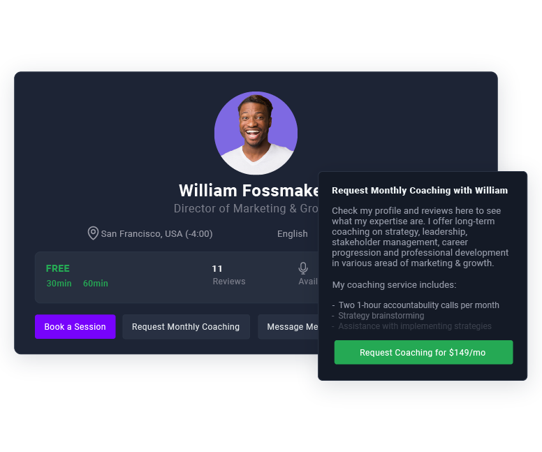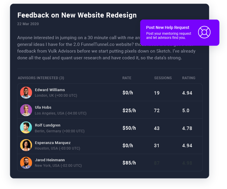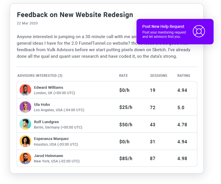 Have 1-on-1 conversations about growth, marketing, and everything in between with the world's top 3% of startup and marketing mentors.